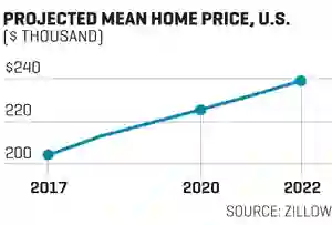 房地产行业网站Zillow请100多位经济学家和房地产专家预测明年房价,普遍的回答是会上涨,但不会有2017年这么高。