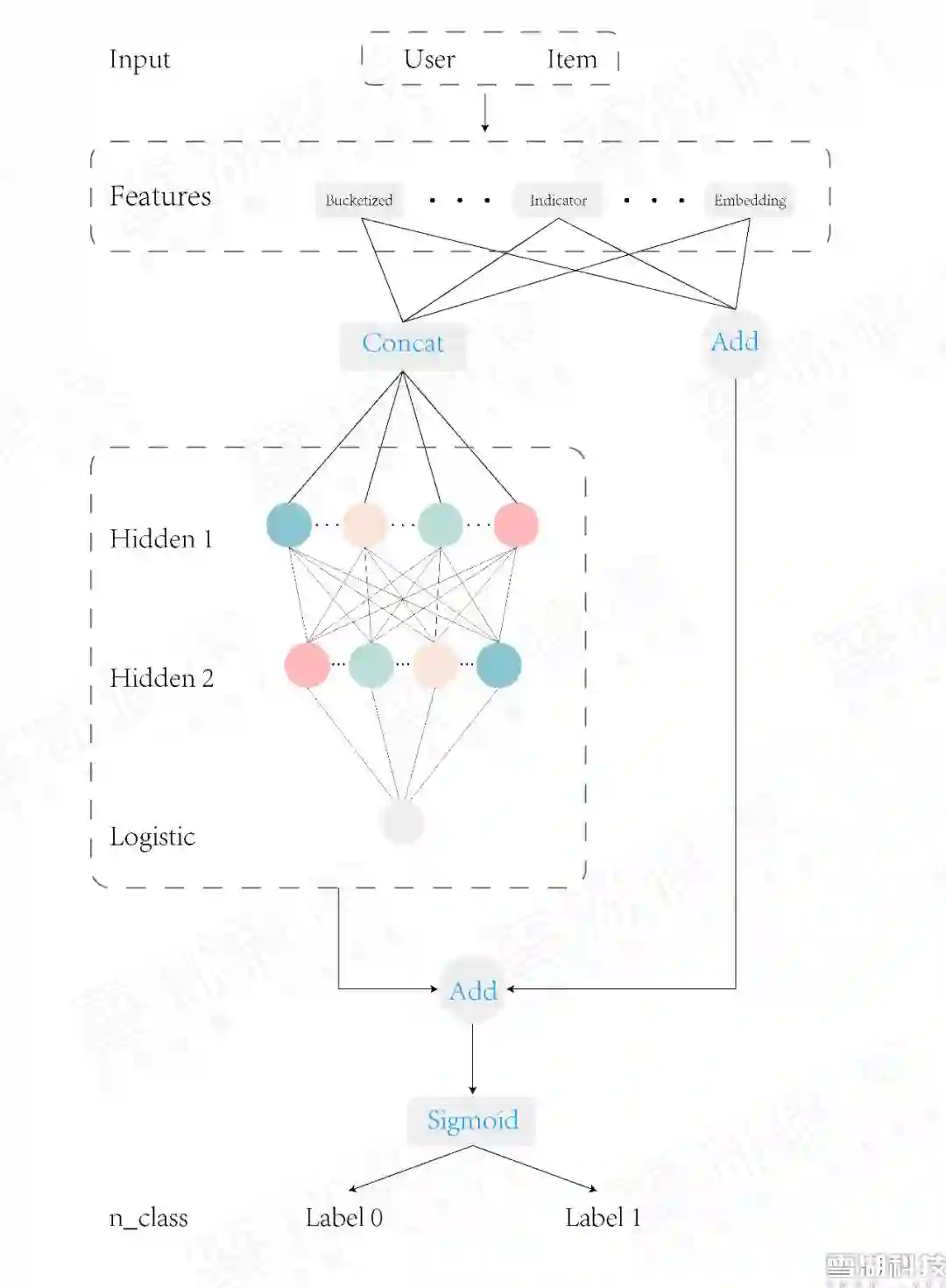 它混合了一个线性模型(Wide part)和 Deep 模型 (Deep part)。