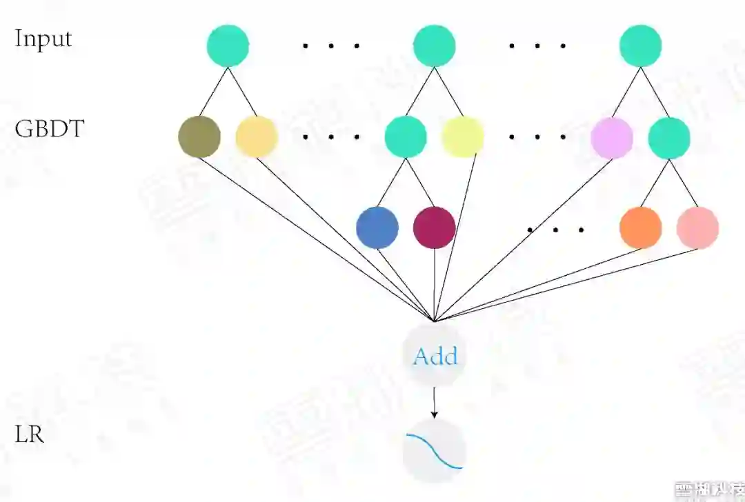 特征工程分为两部分,一部分特征通过 GBDT 模型训练,把每颗树的叶子节点作为新特征,加入原始特征中,再用 LR 得到最终的模型。