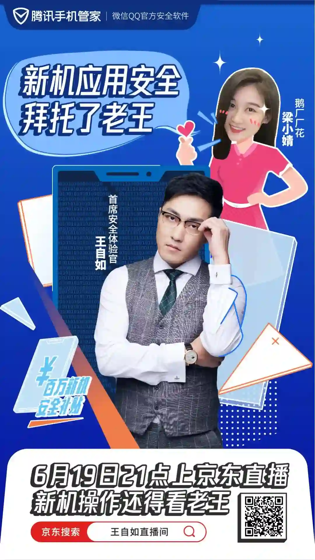除此之外,王自如还会携鹅厂厂花送出神秘福利活动,百万红包等你拿!守护你的新机应用安全,关注王自如直播间,九点准时到来!