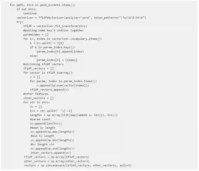 1) 基于TF-IDF对不同路径下的样本分别进行特征向量化,按参数维度对特征向量进行汇聚。