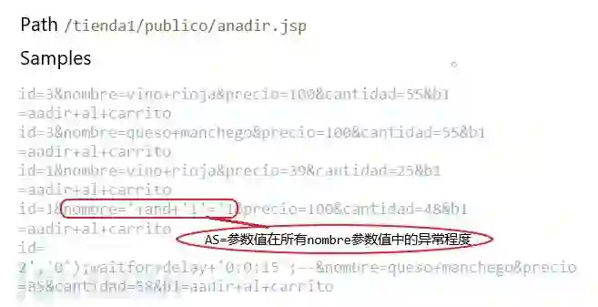 本文使用HTTP CSIC 2010数据集。该数据集由西班牙最高科研理事会CSIC在论文Application of the Generic Feature Selection Measure in Detection of Web Attacks中作为附件给出的,是一个电子商务网站的访问日志,包含36000个正常请求和25000多个攻击请求。异常请求样本中包含SQL注入、文件遍历、CRLF注入、XSS、SSI等攻击样本。数据集下载链接:http://www.isi.csic.es/dataset/ 。在本项目Github中也准备好了。
