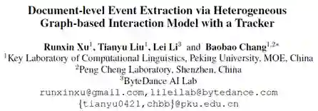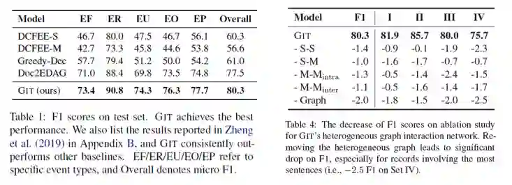 本文提出的Graph-based Interaction Model with a Tracker (GIT)方法基于异质图网络完成篇章内句子、实体提及之间的交互,并引入tracker跟踪预测事件记录以及role对应抽取记录。试验证明它能增强实现篇章理解和事件关联建模。