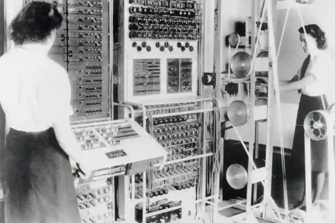 在第二次世界大战期间,图灵了解了使用真空管的高速电子开关的进展,并见证了第一台功能完备的电子数字计算机Colossus的诞生,它从1944年初开始被英国密码学家使用。
