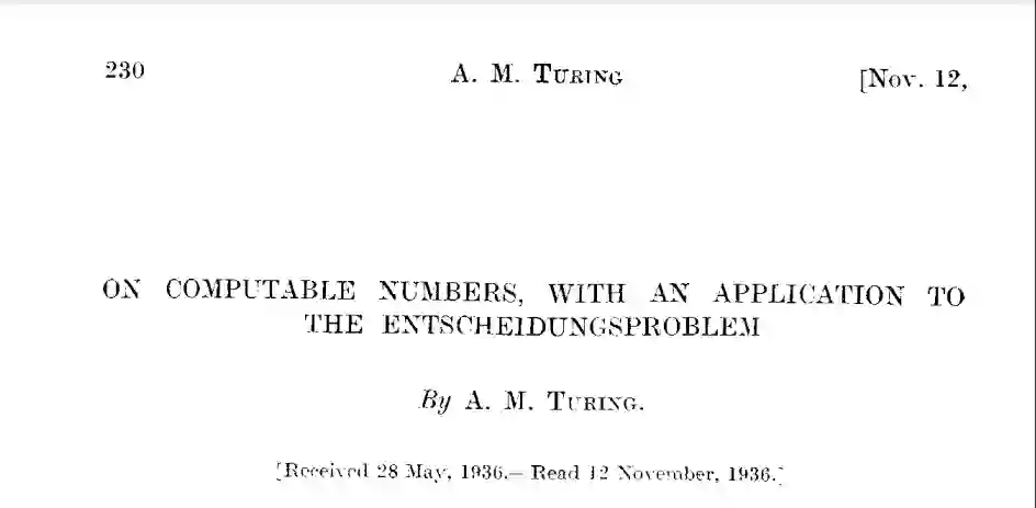 1936年,计算机发展史上具有划时代意义的论文《论可计算数》发表,这是历史上最重要的数学论文之一,图灵在此文中描述了一种抽象的数字计算机,今天被称为通用「图灵机」。