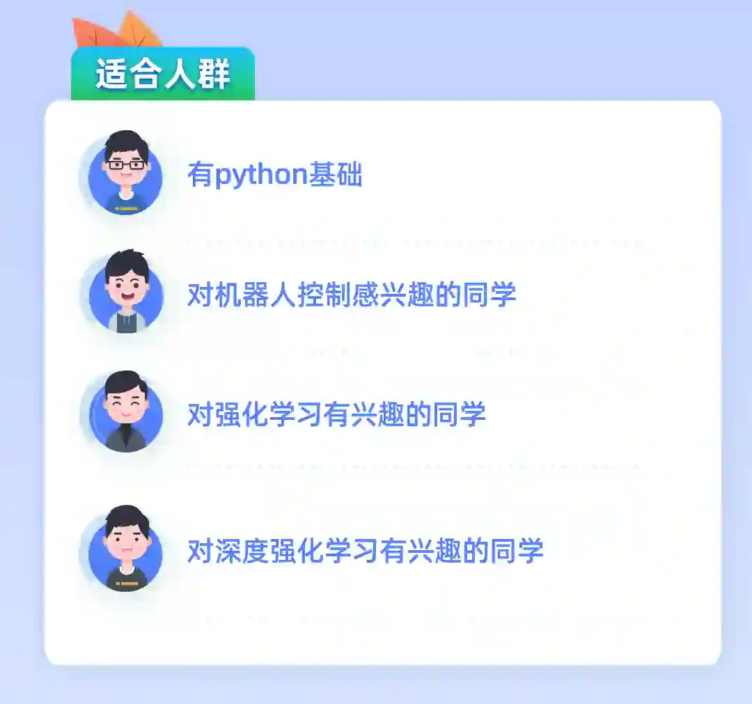 如果你是以上人群,那么这次训练营十分适合你。掌握强化学习基本知识,让你轻松掌握强化学习!快速实现升职加薪!