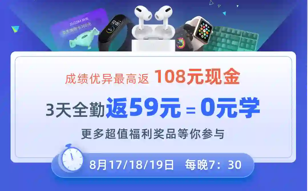 本次训练营开课时间(8月17/18/19日 19:30),希望各位同学报名后: