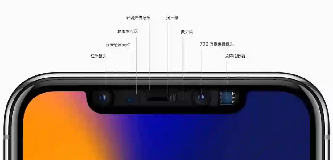 苹果虽然认为 Face ID 更便利,但显然 3D 人脸识别传感器对全面屏手机设计有一定的需求,iPhone X 就是典型例子,现阶段只能在额头保留刘海,只是不清楚为何没有 3D 人脸识别的手机跟风刘海。如何真正的完全消除“刘海”就是苹果需要花更多时间去思考的问题了,因为 Face ID 技术复杂,原深感摄像头系统不只有红外摄像头,还有泛光感应元件和点阵投影器等。目前解决 3D 传感器占地的方案中,OPPO Find X 只能算一个,但苹果表示不会采用。