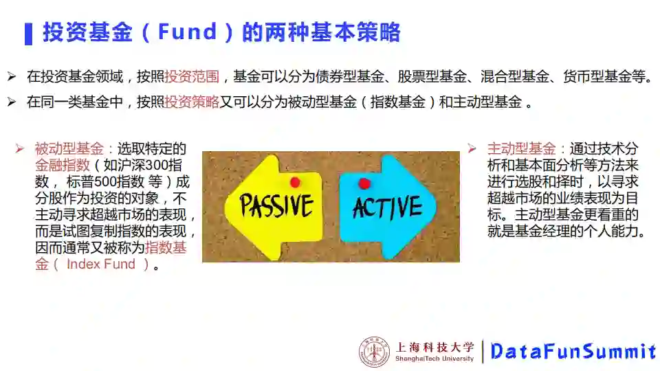 主动型基金:通过技术成分和基本面分析等方法来进行选股和择时,以寻求超越市场的业绩表现为目标。主动型基金更看重基金经理的个人投资能力。