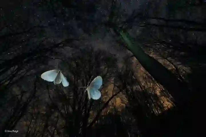 匈牙利摄影师伊姆雷·普裘曾获得过2016年度英国皇家学会摄影大赛冠军,他是个拍摄夜空虫照的高手。这张照片由两次曝光而成,一次使用50mm镜头拍下虫子,一次使用超广拍下环境星空。于是,才有了这张照片。