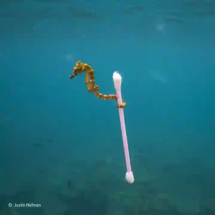 这张照片被命名为《水母骑师(The jellyfish jockey)》。抓着水母的是一只海鳌虾幼体,它只有一厘米多长。这个小家伙幸运的捡到了一个死水母,它可能吃掉了水母的触手,正抱着其身体漂流。