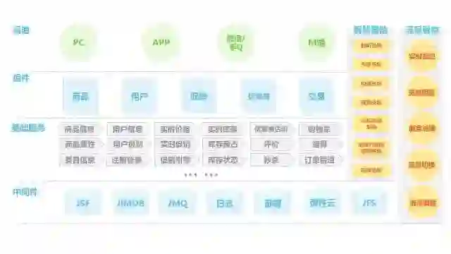 王晓钟: 目前交易平台主要依据业务能力来划分服务的:购物车、结算页、促销、价格、库存、商品、用户等,为 PC,手机,微信等渠道提供高可靠的大中台服务。