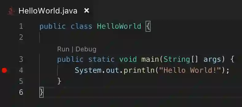安装此扩展之后,如上图所示,你会发现 main 方法上方有两个超链接,分别是 Run 和 Debug。点击“Run”,代码将被编译和执行。你还可以点击 Debug 并设置断点进行调试。