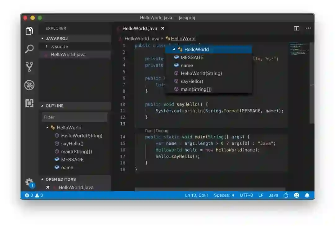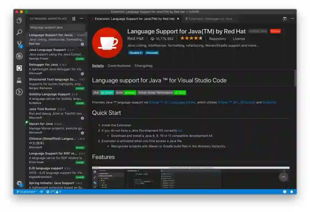 毫无疑问,如此强大的 VS Code 当然支持 Java,许多 Java 大牛和演讲者都选择它来进行现场演示。