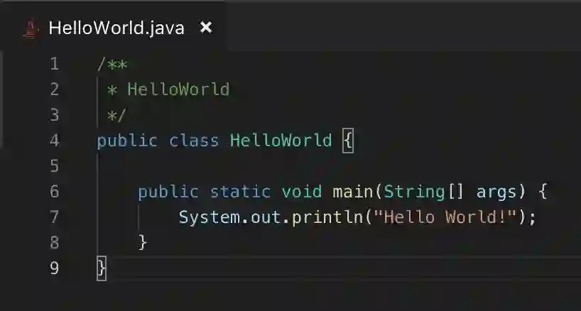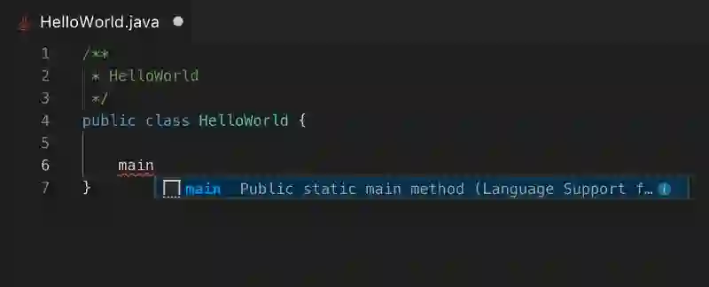 安装语言支持后,你便可以阅读和编辑 Java 源代码了。首先创建一个名为HelloWorld.java 的文件并在 VS Code 中打开(或者在 VS Code 中创建文件,然后将其保存到某个文件夹中也行)。