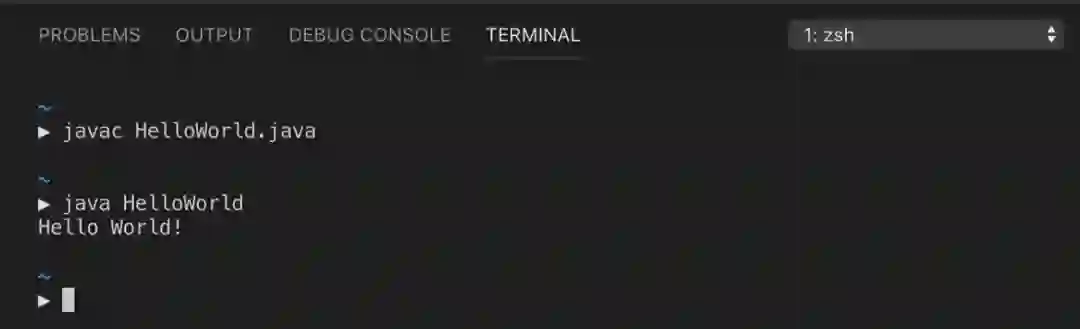 这将生成一个名为 HelloWorld.class 的文件。执行 java HelloWorld 命令即可运行该程序。