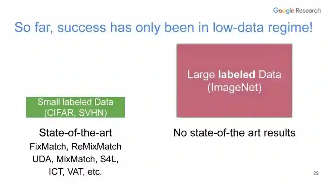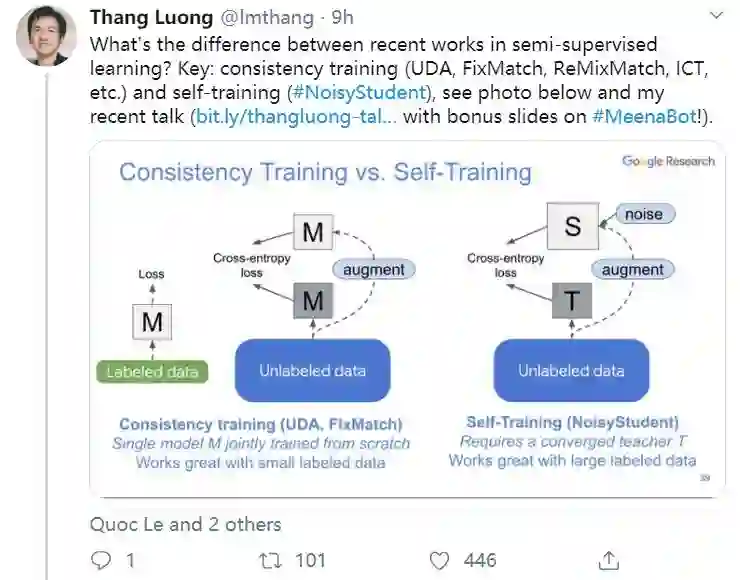 【导读】如何利用未标记数据进行机器学习是当下研究的热点。最近自监督学习、对比学习等提出用于解决该问题。最近来自Google大脑团队的Luong博士介绍了无标记数据学习的进展,半监督学习以及他们最近重要的两个工作:无监督数据增强和自训练学习,是非常好的前沿材料。