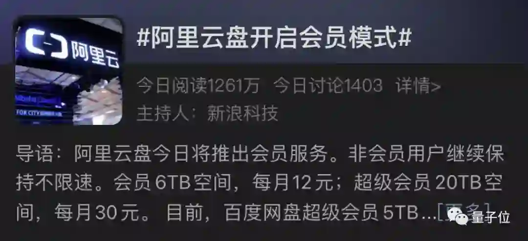 阿里云盘开始会员收费了,单位容量价格还是主要竞品的1/4。