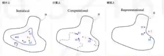 表现上看:真实假设f可能不在已知的假设空间中,更可能多个h外的均值附近