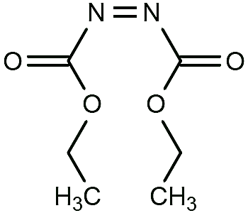 这个长得像无头怪的分子的全名叫做偶氮二甲酸二乙酯,它的英文缩写是DEAD——挂掉了。它不光名字很可怕,而且真的有毒哦。这种橙黄色的液体还很容易爆炸,不过它是一种重要的化学制剂。