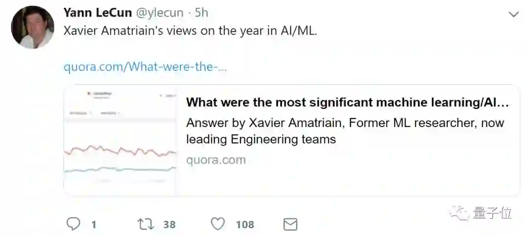答案发布之后,便引发了大量围观,Quora上点赞近400,Yann LeCun也在Twitter上转发推荐。