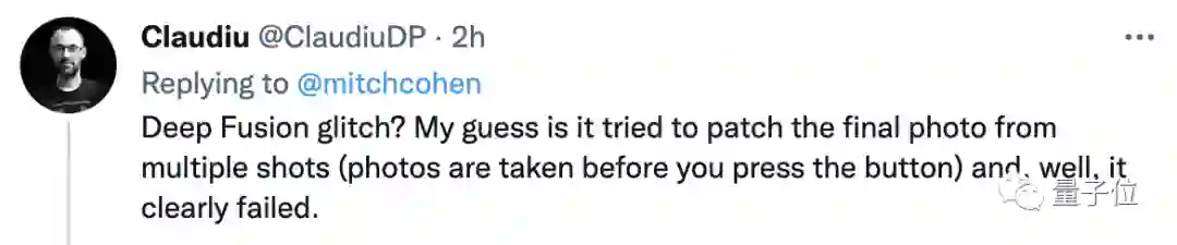 深度融合(Deep Fusion)技术试图将多张照片合成修补成一张,但是失败了。
