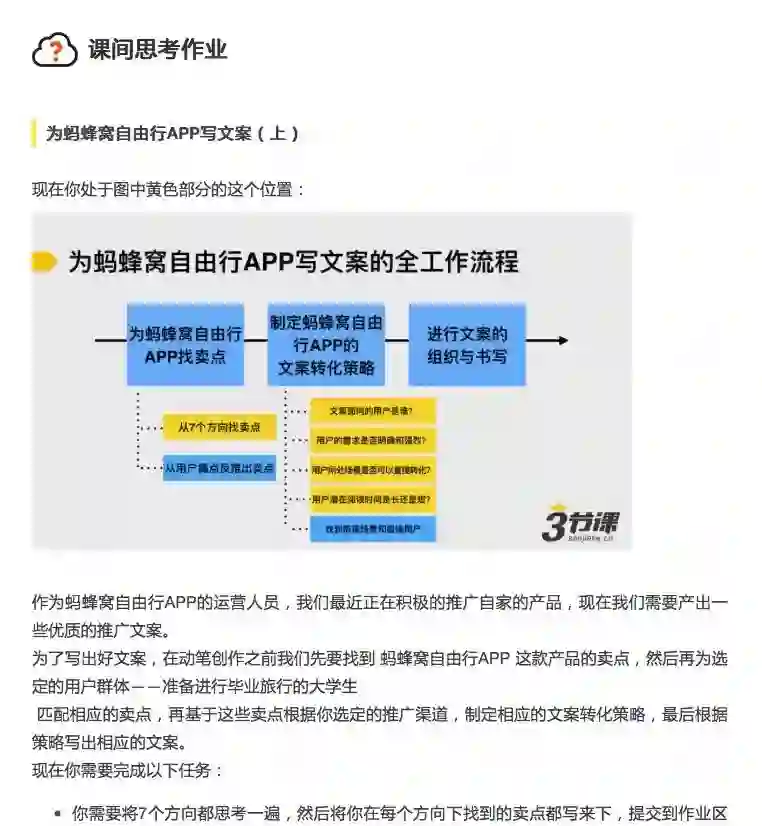 但在3)的维度下,能够满足“大量真实实践机会”和能够提供“高质量反馈”的课程,其实也挺少的。这里可以顺带安利一下三节课的产品经理P1课程和互联网运营P1课程了,这两门课程都是专为0-1岁的从业者而设计,基本有几个特点——