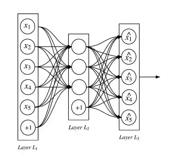 自编码器神经网络是一个三层神经网络,其目标是使输出值近似等价于输入值。下图展示了自编码器的一般架构: