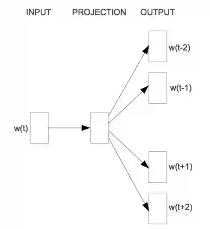 CBOW 可以看作一个具有先知的语言模型,而 skip-gram 模型则完全改变将语言模型的目标:它不像 CBOW 一样从周围的词预测中间的词;恰恰相反,它用中心语去预测周围的词: