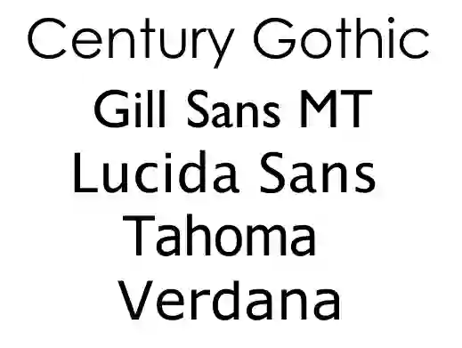 Sans-serif(无衬线) – Century Gothic, Gill Sans MT, Lucida Sans, Tahoma, Verdana