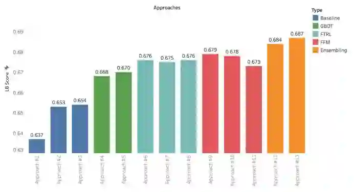 在2014年两个CTR预测比赛中获胜的方法都使用了一种叫 Field-aware Factorization Machines (FFM)的方法,它是因式分解机(Factorization Machines)的变体。FFM尝试通过学习每个特征交互对的潜在因素来为特征交互建模。这个算法可以在LibFFM框架中实现并且已被许多参赛者使用。LibFFM对大型数据集的并行处理和内存使用非常有效。