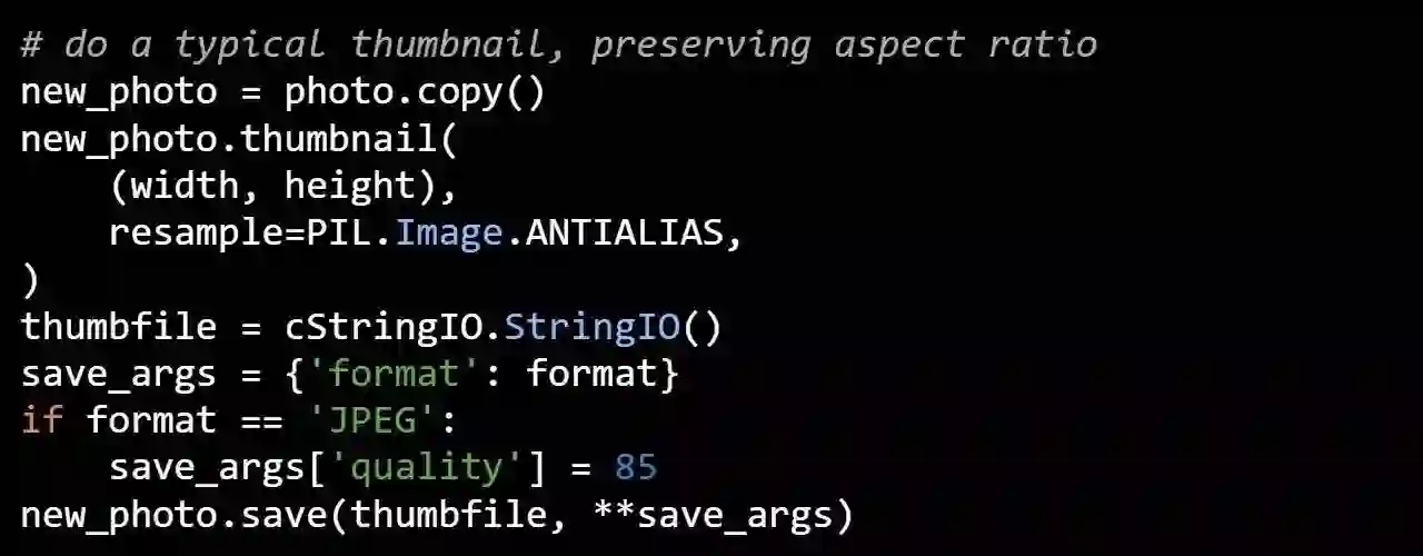 Yelp 存储着用户过去 12 年以来上传的所有照片。我们使用了无损格式(如 PNG、GIF)PNG 和 JPEG 等格式,图片存储使用了 Python 和 Pillow。最初照片上传是通过下面这样的代码实现的:
