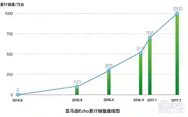 亚马逊Echo在2014年8月左右推出,并在11月份上线亚马逊商城。通过Prime会员半价、亚马逊商城首页广告等一系列措施,经过近1年的发展,Echo在2015年9月达到100万台。