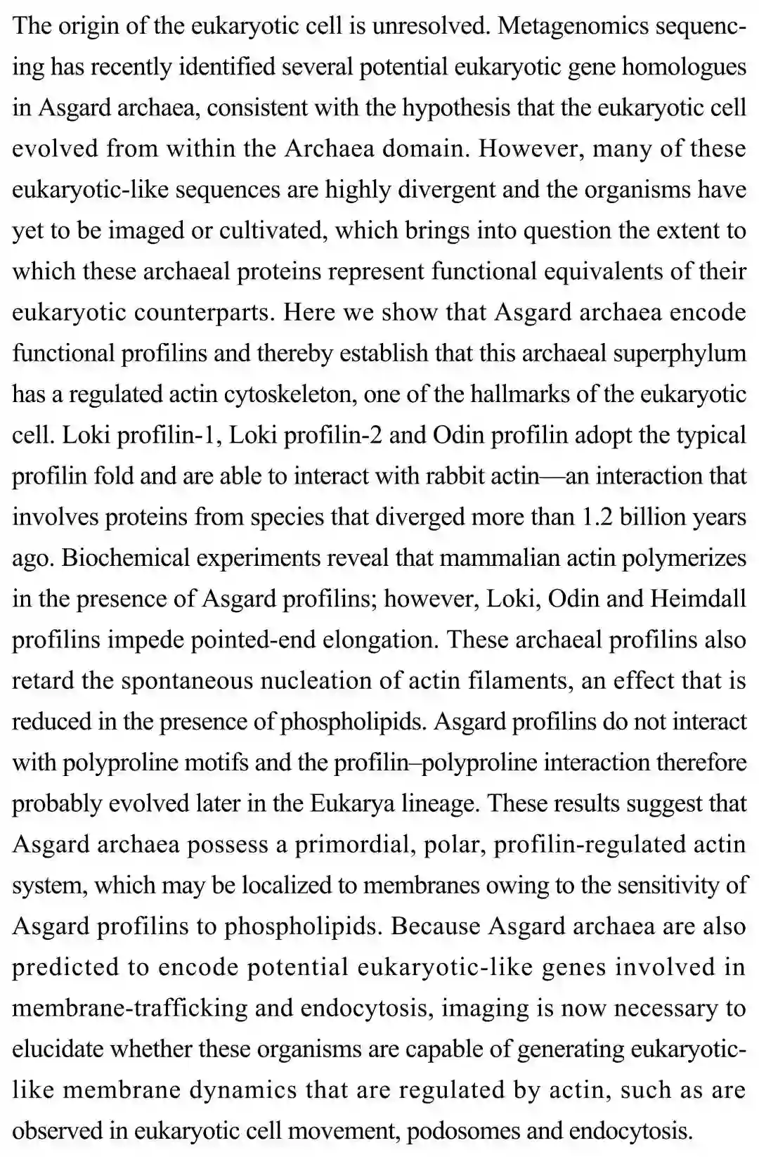阿斯加德古菌基因组编码可调节肌动蛋白的肌动蛋白抑制蛋白
