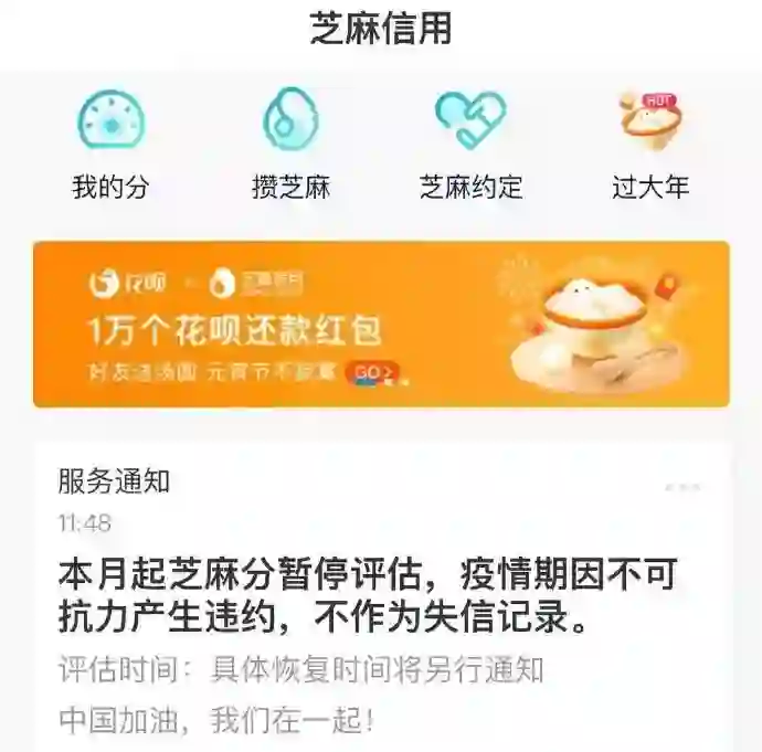 自2月5日起,芝麻信用分将暂停评估