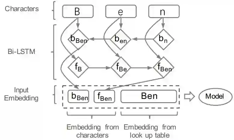 图 3: The character embeddings of the word “Ben” are given as input to a bidirectional LSTM.