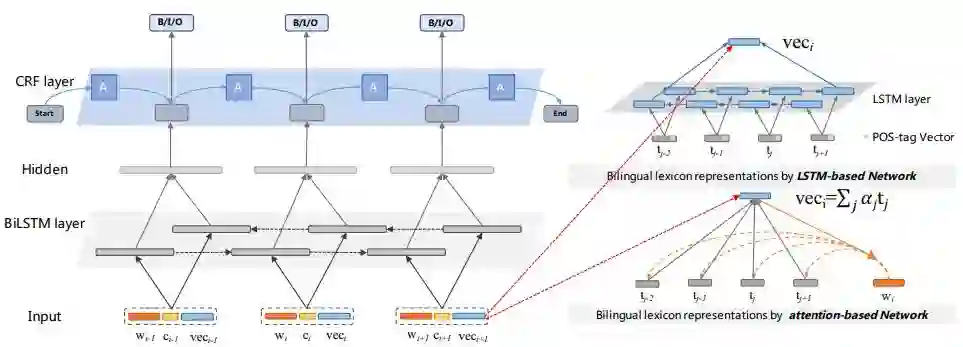 本文介绍哈尔滨工业大学社会计算与信息检索研究中心(HIT-SCIR)录用于IJCAI 2018的论文《Improving Low Resource Named Entity Recognition using Cross-lingual Knowledge Transfer》,在稀缺资源语言实体识别任务中,我们在原有LSTM-CRF模型的基础上,利用双语词典作为跨语言信息传播桥梁,为每个稀缺资源语言词语学习英文语义空间下的语义表示,并映射到稀缺资源语言空间增强原有表示。在西班牙语、荷兰语和中文三种语言数据集上进行实验,结果显示,通过加入跨语言信息表示,实体识别性能平均提高大于3%。本论文的数据和代码;https://github.com/scir-code/lrner
