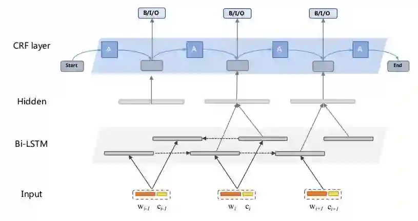 本节中,我们采用LSTM-CRF作为我们的基础模型,并在此基础上进行扩展。该网络由两个长短期记忆网络组成,一个前向记忆网络和一个后向记忆网络