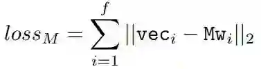 其中M是映射矩阵,是有翻译的目标语言词汇。我们最小化如下损失函数去学习矩阵M,