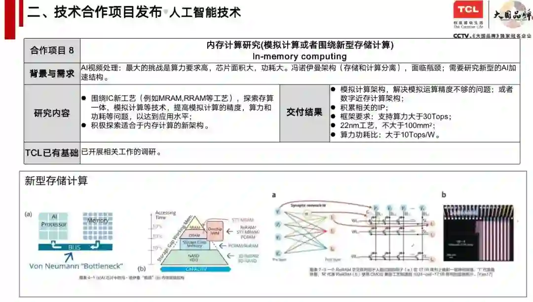 背景与需求:AI视频处理:最大的挑战是算力要求高,芯片面积大,功耗大。冯诺伊曼架构(存储和计算分离),面临瓶颈;需要研究新型的AI加速结构。