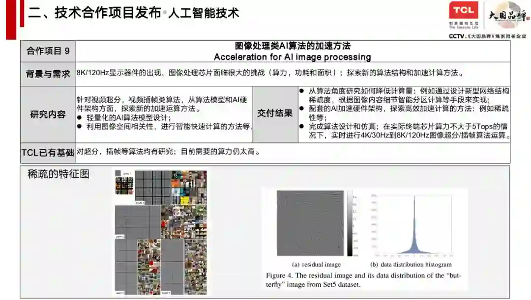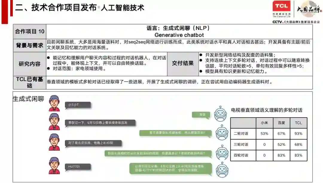 这次,TCL 在近日举行的技术合作开放大会上,将 AI 技术的布局再次扩大, 面向全球发布了 13 个技术合作项目,其中就包括 7 项人工智能技术,另外 6 项为新型显示技术。本文将重点介绍 AI 相关技术项目。