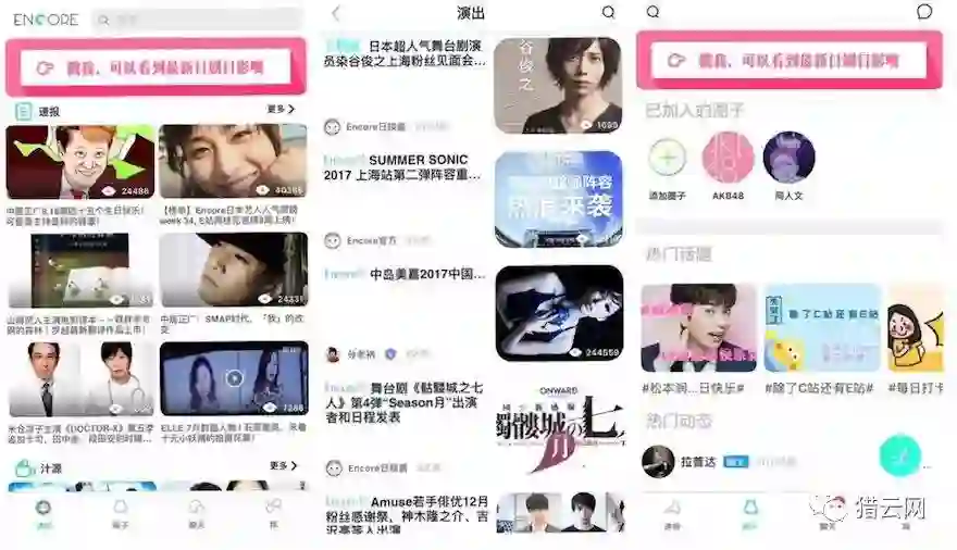 如果将圈子比作用户们聚会酣谈的楼宇,那么资讯、票务、周边等底层服务则是地基。Encore中的内容有多种来源,如用户原创、日本一手资讯等,专职编辑结合UGC用户将这些信息筛选整合。运营负责人格瑞举例道,不少大学生会将爱豆的视频二次剪辑,他们是较专业的内容制造者,又不求任何经济回报。