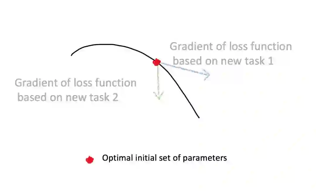 但是这种神奇的内部表示从何而来?在迁移学习中,这种表示是预训练神经网络在大量数据中训练得到。初始化后,新的小数据集会重新训练神经网络,既可以是整体的,可能是局部的(只有最后一层)。获得这种表示的另一种方法是采用一组初始的神经网络参数(参考链接:https://arxiv.org/abs/1703.03400)。当这个网络由正确的参数进行初始化,它就可以快而简单地使用少量新数据进行调整。这说明,初始的一组神经网络参数可能对新任务非常敏感,小的参数变化会极大提高损失函数在任何任务上的表现。
