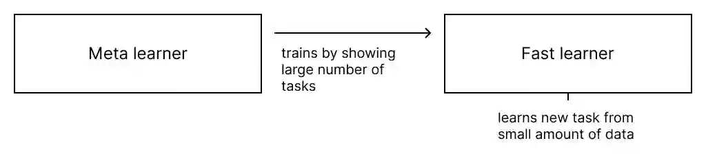 图 1:元学习的概念框架。元学习从大量任务训练模型,并通过少量数据在新任务中更快地学习。