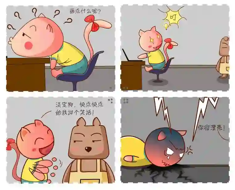 还有一点,视觉叙事是建立在“逻辑”和“常识”两个概念基础之上的。比如小猫说讲个笑话,小狗说“你好漂亮”,理解这个情节就需要“你说我漂亮是笑话=你说我丑”这一基础的逻辑。又比如《哆啦A梦》中常见的老鼠梗也需要“猫通常不怕老鼠”这一基础常识。