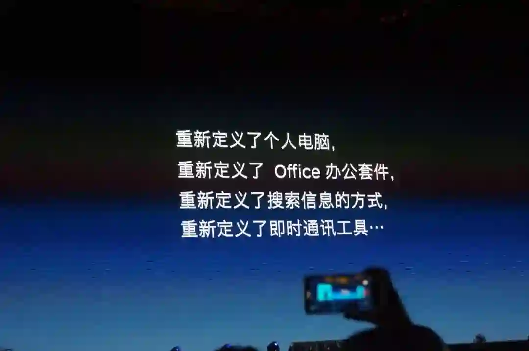 这也顺道带来了老罗的“重新定义”系列:“个人电脑”、“Office办公套件”、“搜索信息的方式”、“即时通讯工具”……