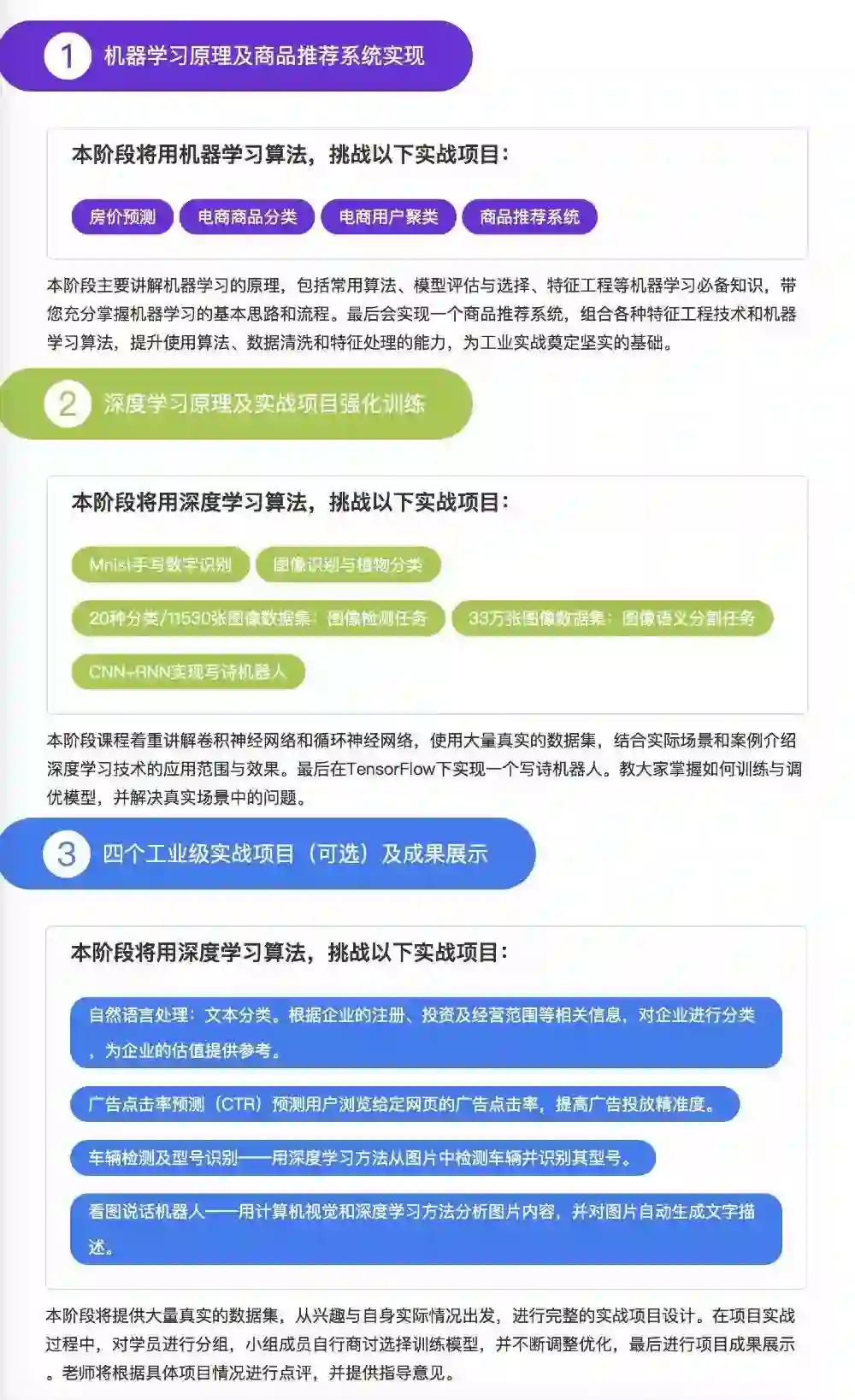 在学习课程的同时,推荐大家学习一下 Hadoop、Spark 等大数据相关的课程;也推荐其他学员参加比赛。公司面试的时候非常关注学员的项目经验,对于比较欠缺项目经验的学员来说,如果没有 AI 方面的实战经验,可以阐述自己参加比赛的经验,以及用到的方法等等。