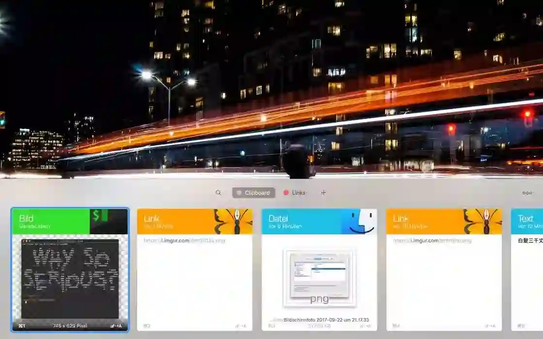 但是我作为主力使用的是 Paste(快捷键 ⇧ ⌘ V),因为它可以直接展示的剪贴板中图片的缩略图,这一点非常实用: