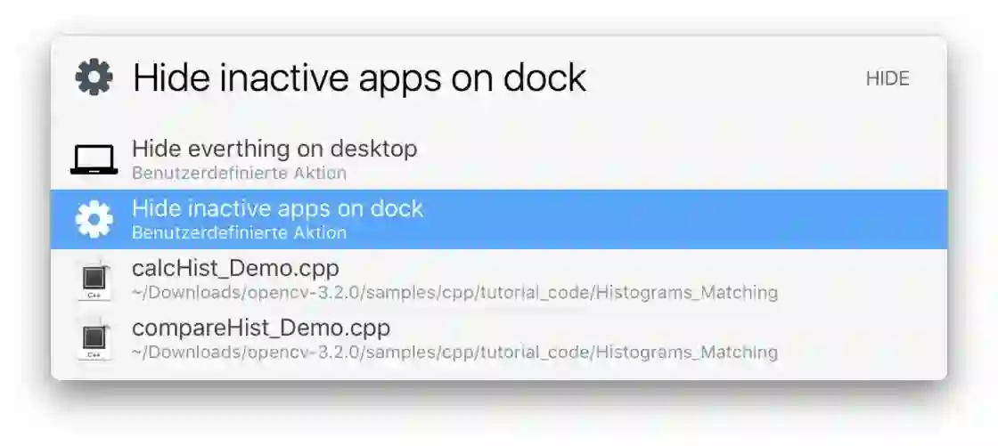 所以一开始我想要把 Dock 彻底禁用,然而并没有找到可以禁用它的方法,所以我把它移到了桌面的右侧,并且参考我派这篇文章中的方法一删除了 Dock 上的常驻图标,同时我也把文中提到的清理 Dock 的命令做成了 LaunchBar 中一个简单的 Action,以备日后方便调用: