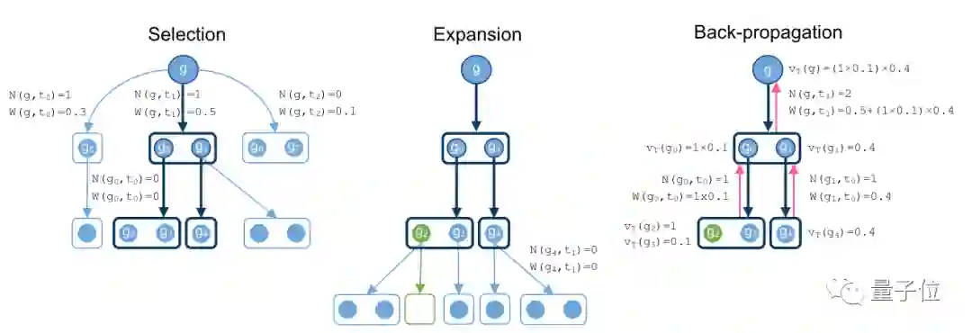 它的运行过程,就是通过在搜索空间中随机抽样来找寻有希望的动作,然后根据这个动作来扩展搜索树。